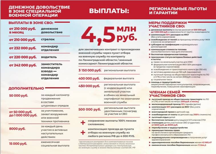 4 500 000 рублей — гарантированная выплата заключившим контракт в Ленобласти на участие в СВО в войсках беспилотных систем.